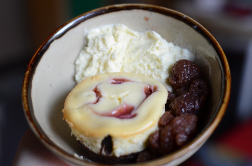 Cupcakes: Mascarpone & Ricotta Cheesecake on Chocolate with Raspberry Hearts