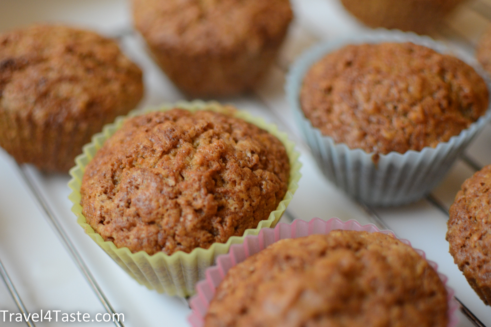 2. Fill 3/4 of each muffin form with the dough. Bake in preheated to 180’C oven for 20-25min. The muffin will nicely grow and they will get browner.