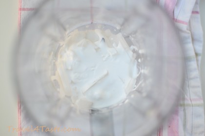 2. Put together the frozen banana, coconut milk, ice cubes, and your double espresso and blend it all together.