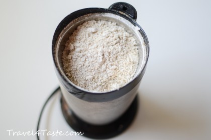 2. Ground the oatmeal. I use my coffee mill in this purpose but a mortar should also do the work.
