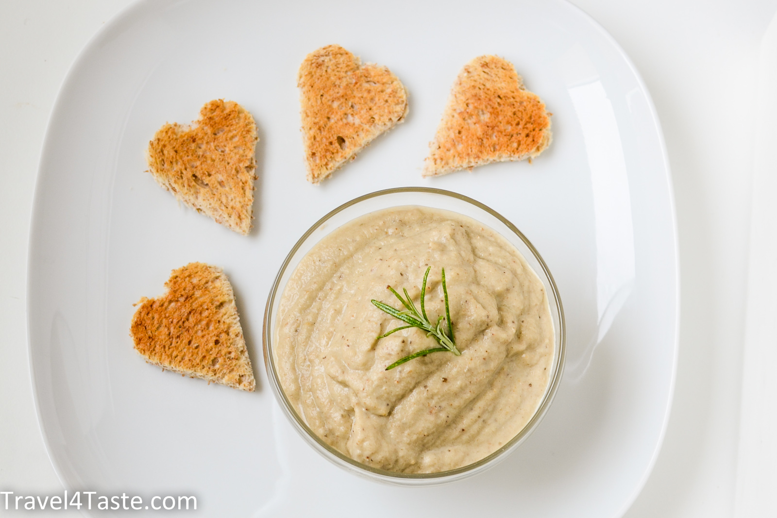 I took something very similar as an entree in one of Parisiens restaurants. If you like eggplant, you will love this dip! It is light, healthy and delicious! I like it the most with simple bread toasts. Perfect for a movie evening with friends! 🙂
